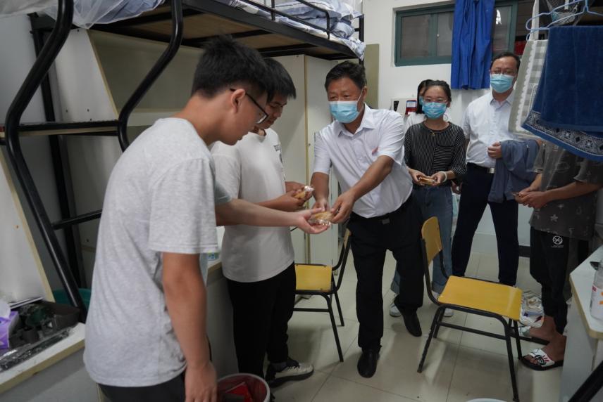 最后,刘建光一行为新生们分发了月饼,并祝同学们中秋快乐。