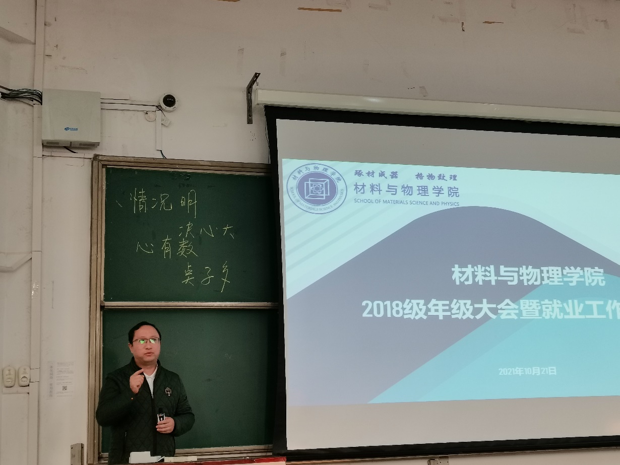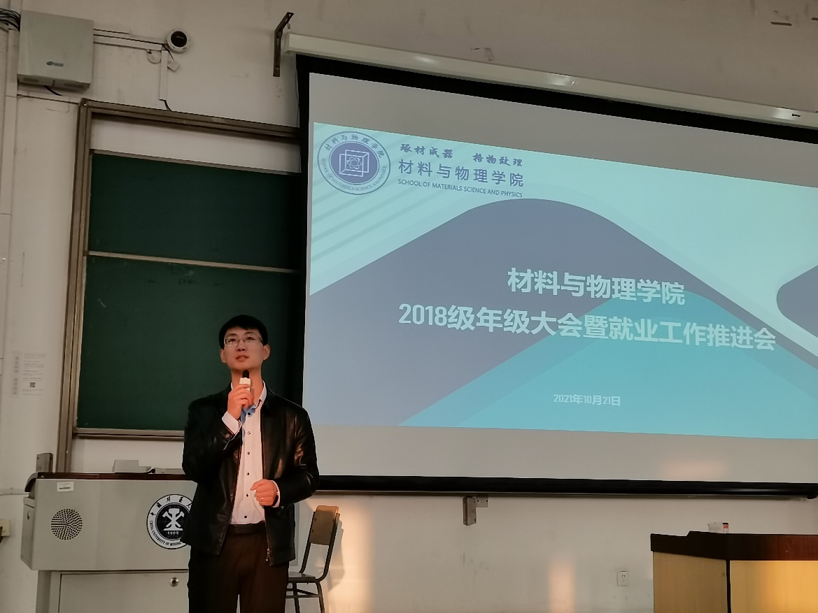 10月21日下午4点,我院在博二C302教室召开材料与物理学院2018级年级大会暨就业工作推进会。大会由我院党委副书记纪承、材料专业教授陈正主讲,2018级辅导员贾俊飞主持,全体2018级本科生参与。