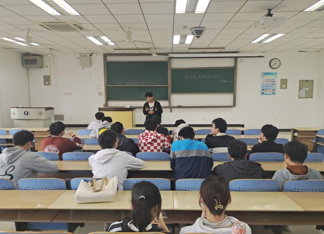 10月29日下午2点,材料19-5班在博一A303开展“学习宪法,做宪法卫士”主题团日活动,活动由团支书翁海峰主持,材料19-5班全体同学参加。