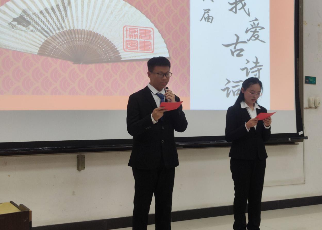 由化工学院主办,我院协办的第六届“我爱古诗词”大赛为加强我校同学们对以诗词为代表的传统文化的关注与认识,11月23日晚在博学楼二号C区教学楼举办。
