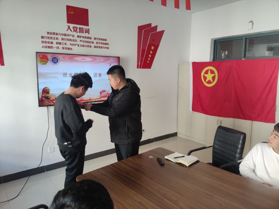 团委学生副书记王小寒为新团员颁发团员证并佩戴团徽