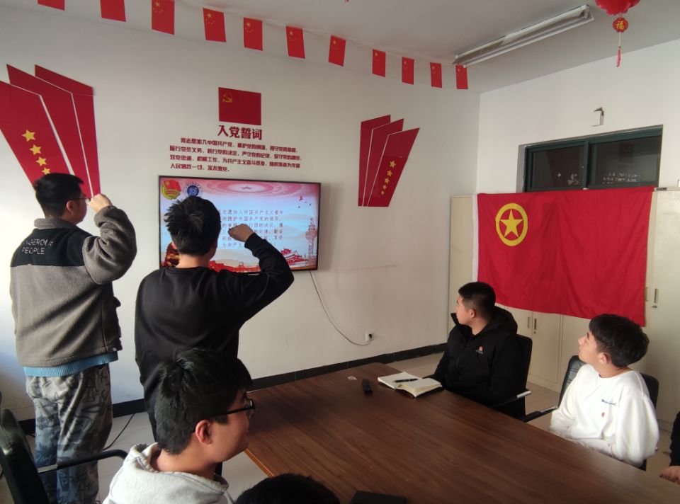 随后新团员在组织部张哲夫同学的带领下进行入团宣誓,宣誓庄严肃穆,象征着成为一名合格团员所拥有的决心,入团介绍人李宗宇通过宣读《团章》中相关条款使新团员明了作为团员的义务与权利。新老团员代表进行发言,新团员分享了自己成为团员的感受和之后作为团员的学习工作计划,老团员代表杜家豪也分享了自己在团组织中学习和进步的历程,对新入团同学起到了良好的模范带头作用。