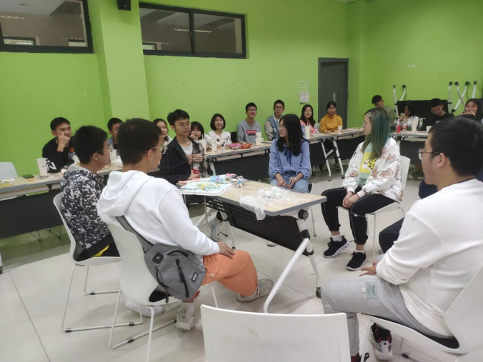 会议现场的座位分布为正方形,四个部门的成员依次就位。在全员到齐之后,首先由各部长为大家分发零食和奶茶,营造轻松愉快的聚会气氛。随后,袁俊卓组织各部门成员做自我介绍,让各部门之间互相熟悉。