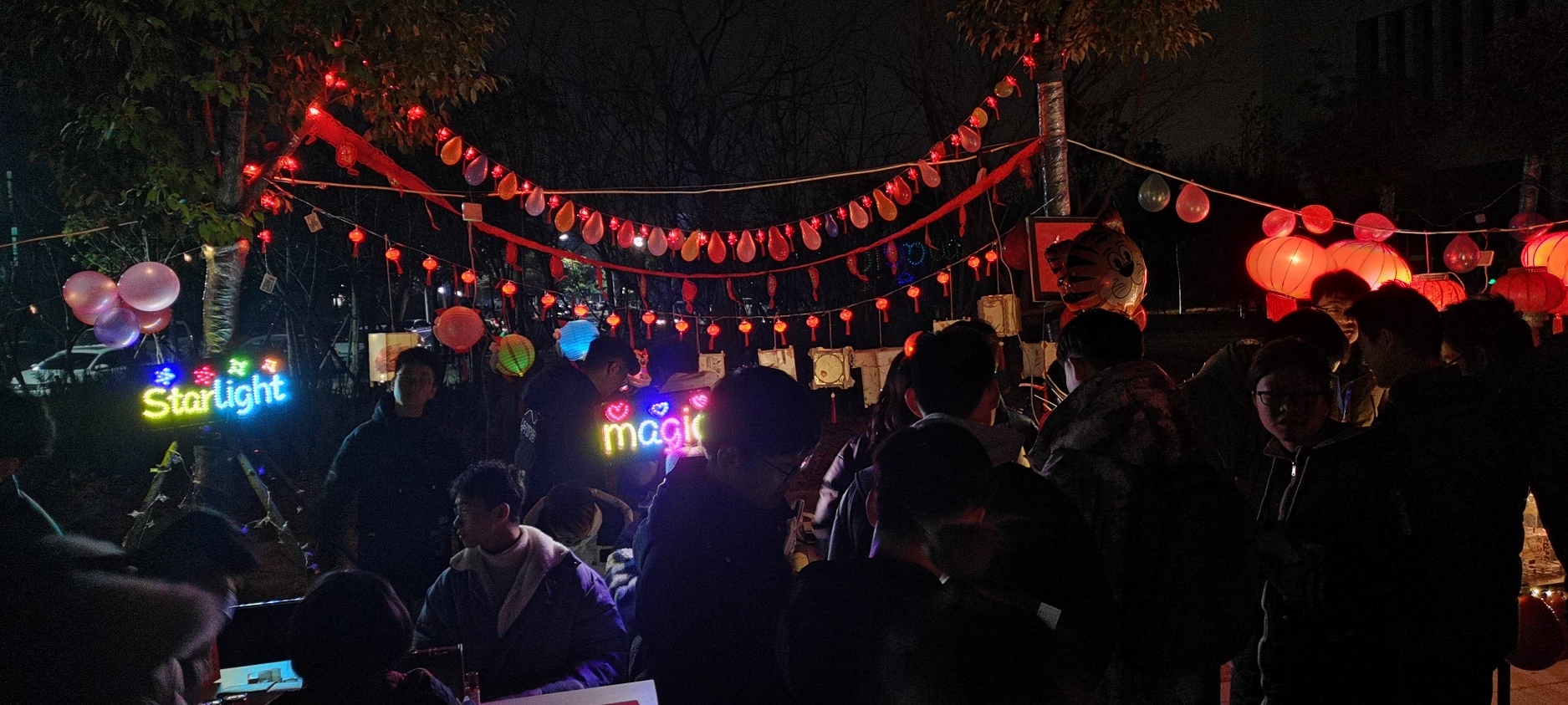 31日上午,在姬祥的指导下,文艺部部长团带领部分干事搬运灯展所需的桌椅、装饰等,在提前划分好的区域进行了基本的设计安排与布置。下午两点,文艺部成员进行灯展区域的布置,每人都各司其职,努力做好自己分配到的任务,灯展“喜迎元旦”的环境氛围很快就被营造了出来。傍晚六点,正式亮灯开展,我院灯展区域是由学生会文艺部,星河天文学社,魔术协会共同负责。星河天文学社为观展人员提供了天文望远镜,供参展人员观赏星空,并在展览点设置了猜天文灯谜兑换礼品的活动。魔术协会则是在指定展览区域进行魔术表演互动,许多观展人员都被神奇的魔术所吸引。晚上九点时分,灯展结束,文艺部成员对展览的场所进行整理与恢复。