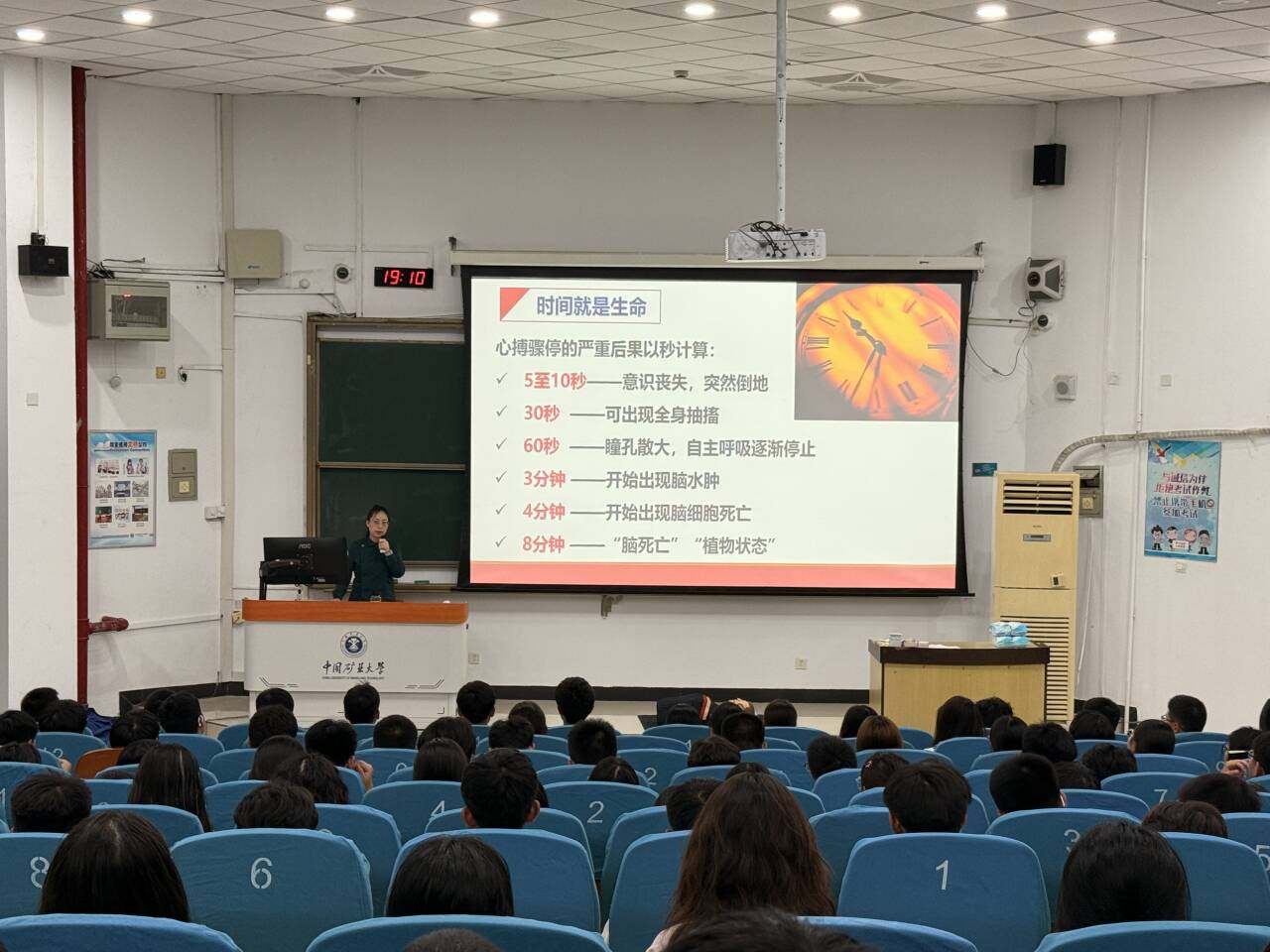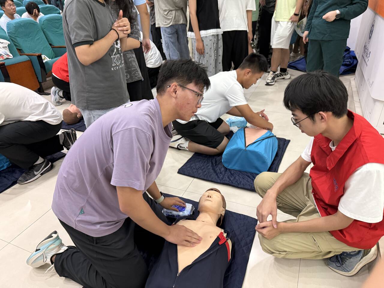 9月7日,应急救护培训在博2-C202教室举行。徐州医科大学的专业医生受邀为师生授课,系统讲解了常见意外伤害的应急处理措施、止血包扎方法及 AED 设备使用知识,并重点演示心肺复苏的操作流程与技术要点。在全员实操环节,师生们积极参与模拟演练,熟练掌握了关键急救技能,显著提升了应对突发事件的处置能力和互助意识;