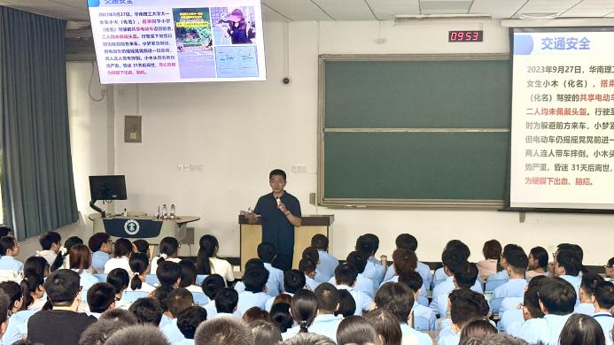 9 月1日,学院邀请校党委保卫部赵斌老师在博1-C103 开展新生安全教育专题讲座。讲座中,赵斌聚焦校园易发安全风险领域,围绕“政治安全、人身安全、财产安全、消防安全、交通安全”五大板块,系统开展警示宣传教育并针对性地给出防范建议。