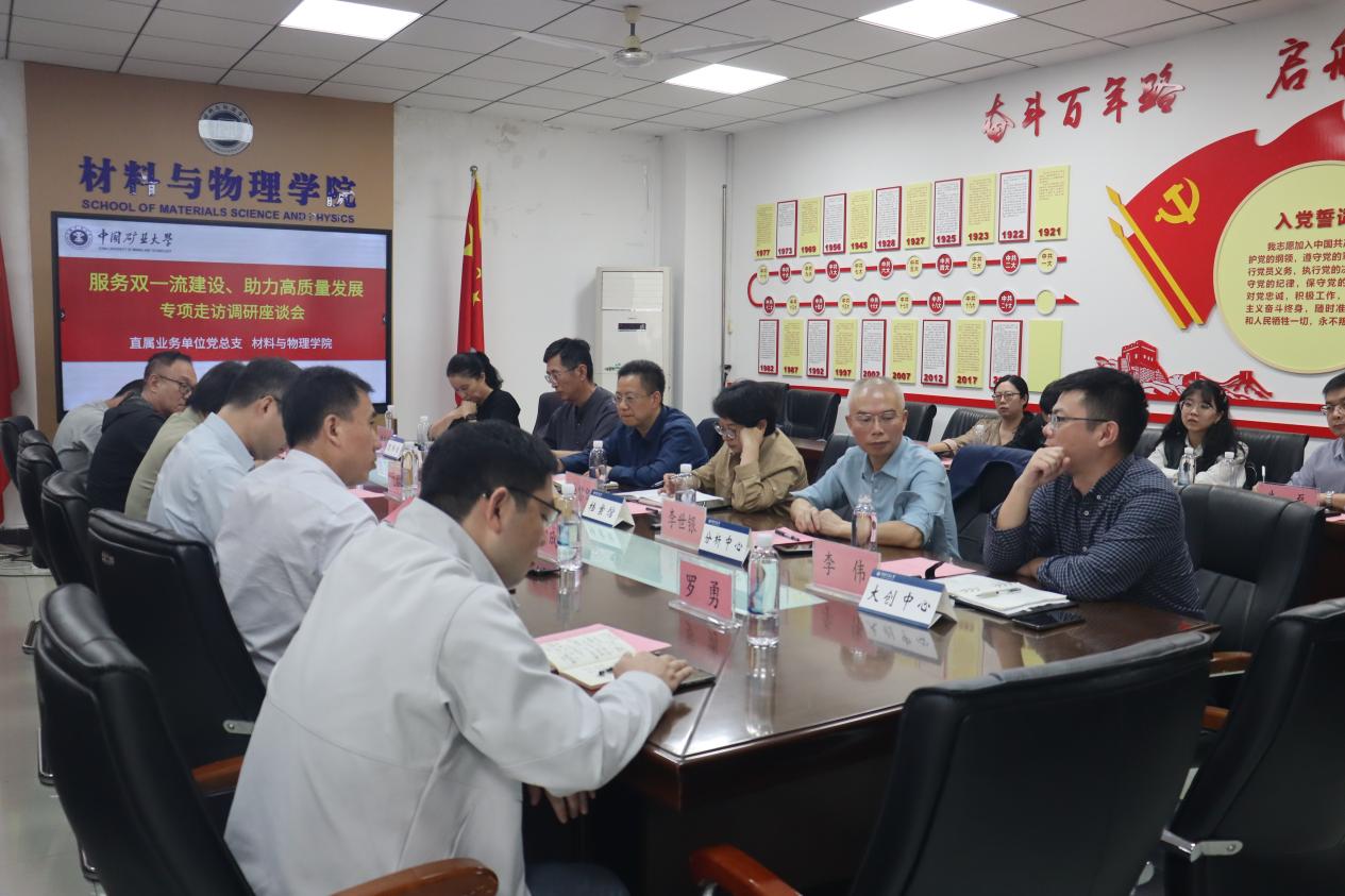 9月30日,我院在材料楼A501举办“服务双一流建设、助力高质量发展”专项走访调研座谈会,直属业务单位党总支书记方跃平一行出席活动,学院领导班子成员和各系、中心主任参会,会议由副院长鞠治成主持。
