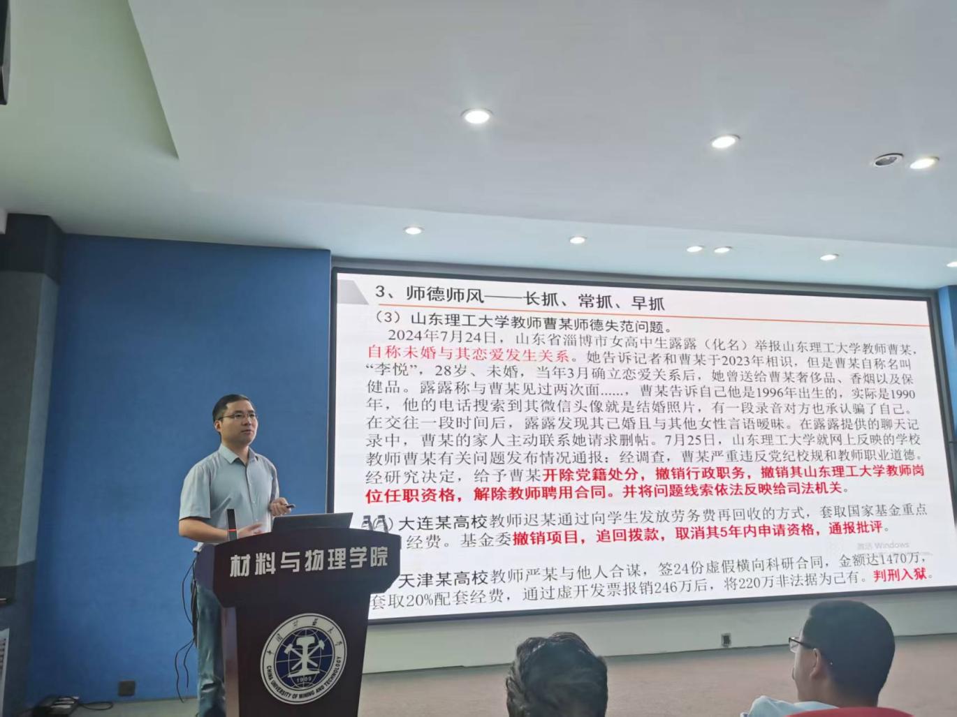 为深入贯彻落实学校关于师德师风建设工作要求,材料与物理学院近期开展系列专题活动,通过教育培训、专题研讨、氛围营造等形式,全面推进师德师风建设走深走实,形成全院崇德向善、风清气正的育人生态。