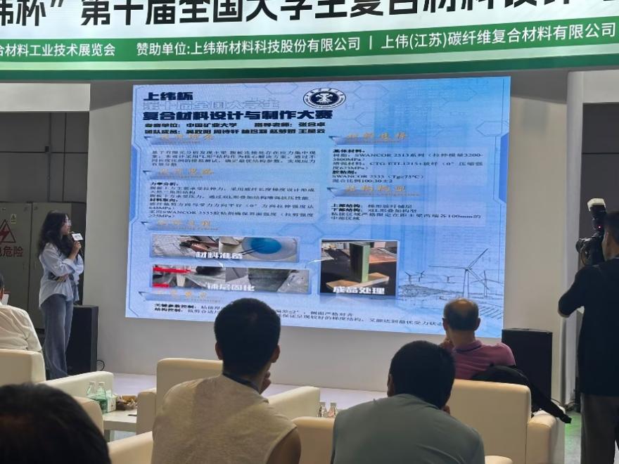 从8月下旬开始,参赛队员便开始有针对性地进行备赛,从确定方向到讨论修改再到精心制作,最后成功完成了三组作品。比赛过程中,参赛队员对设计思路进行了讲解,并顺利通过外观检查和载荷测试。同时,参赛队员还积极与其他队伍交流探讨,学习其先进之处。赛后,队员们参观了复合材料领域知名企业的展台,并与行业专家和技术人员进行了深入交流,对复合材料从原料制备到先进成型工艺及相关产品都有了更直观和深刻的认识。