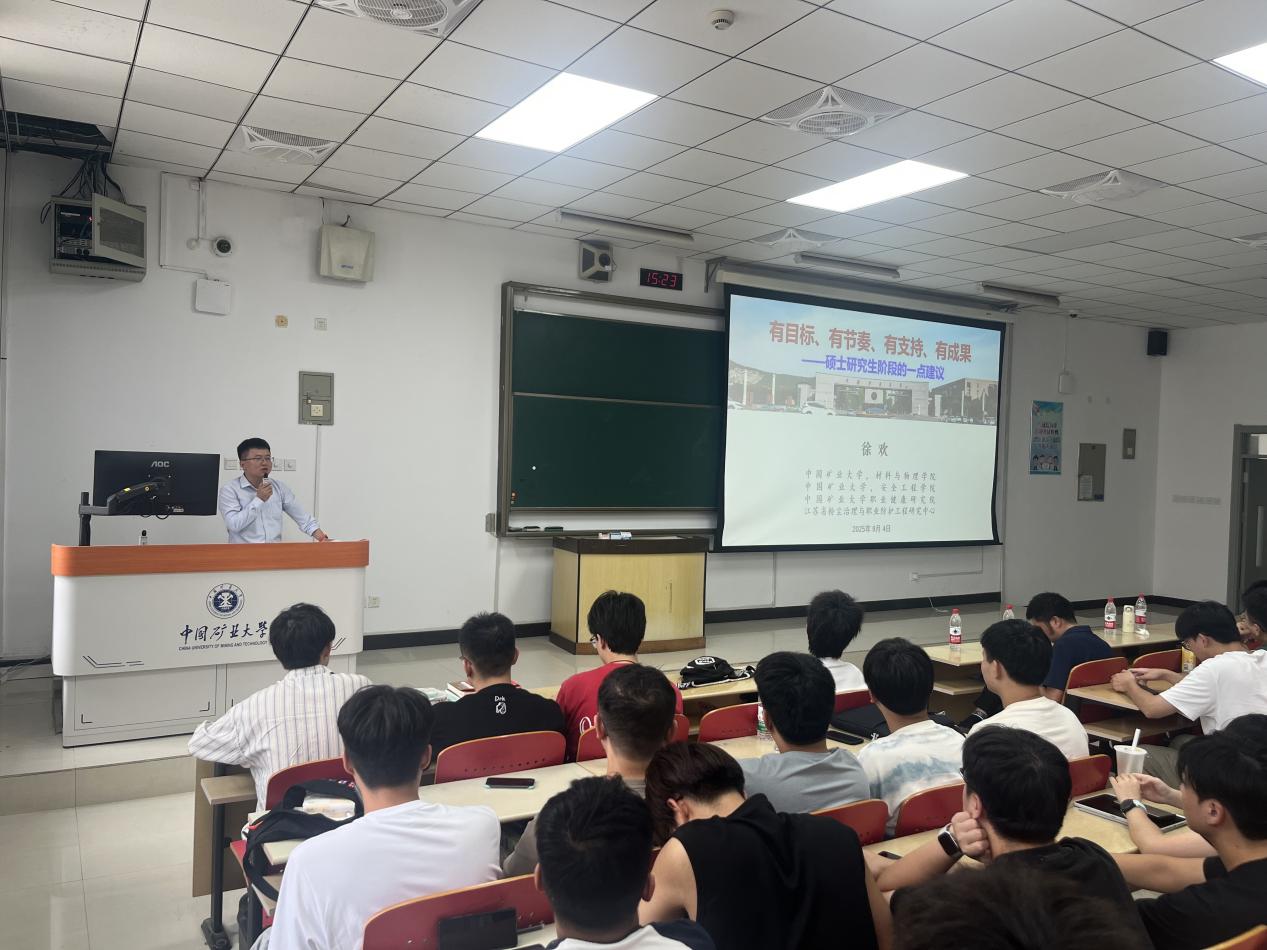 9月1日上午,我院2025级研究生新生在材料楼 A105、物理楼 A504-1分会场集中收看校级新生入学教育讲座。讲座邀请多领域专家授课:马克思主义学院阎国华院长以“明志笃学,谱写中国式现代化新篇章”为题,引导新生立理想、融时代;公共管理学院段鑫星教授结合自身经历,从心理层面指导新生走好科研路;中国煤炭科技博物馆馆长、校文博中心主任王传棨讲述了“矿大精神与文化”,增强了新生归属感;图书馆科研支持部主任史慧丹介绍了图书馆的资源与服务,助力研究生的科研学术;保卫处安全监督科科长瞿望分享了安全知识,筑牢校园防线。老师们从理想信念、心理健康、校史文化、科研支持、校园安全等维度,为新生搭建起适应研究生生活、规划学术道路的 “第一课” 框架。