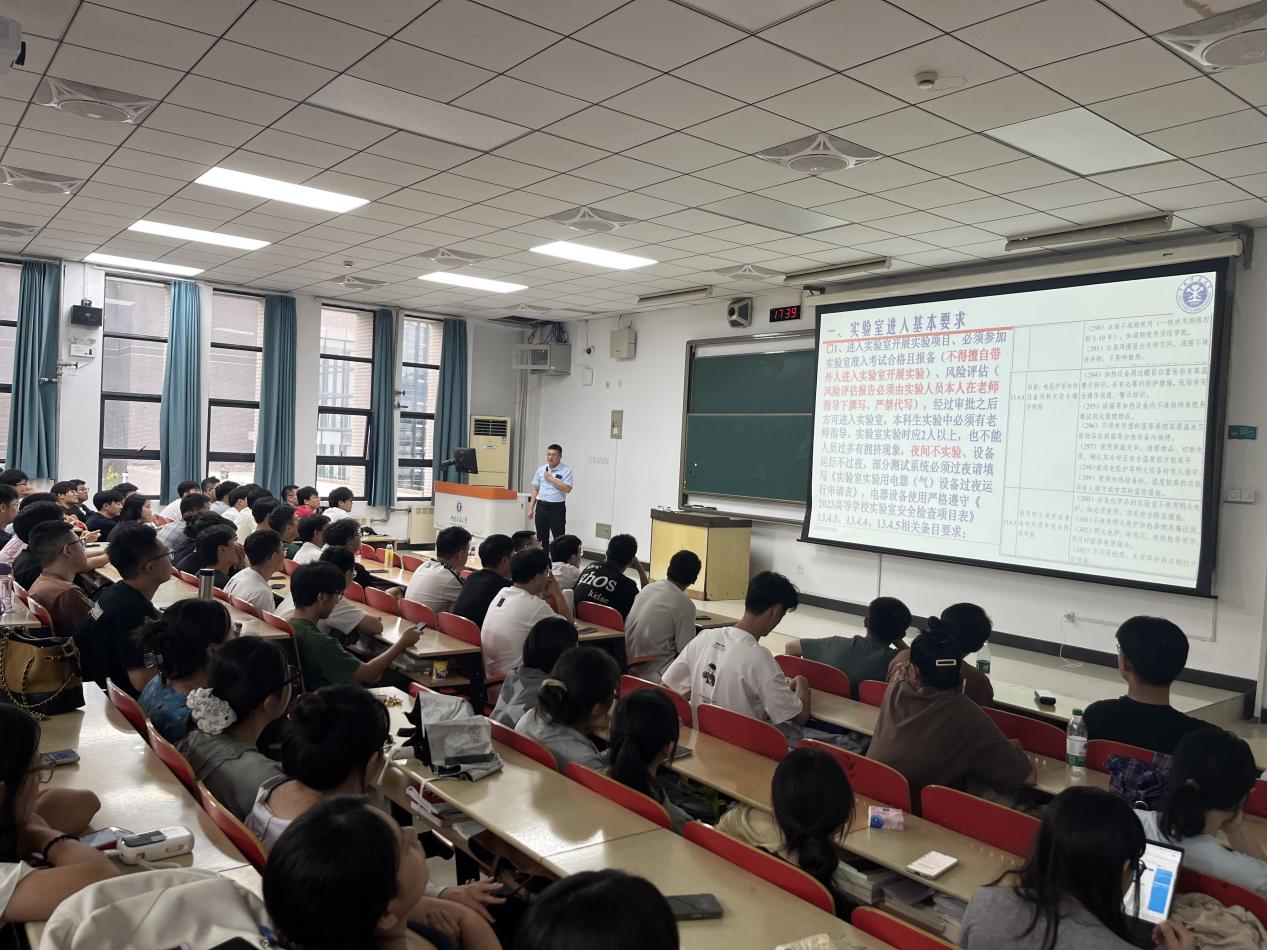 9月4日下午,我院在博二楼C301开展2025级研究生新生实验室安全教育。学院副院长焦险峰、实验中心副主任魏京胜出席会议,学院全体2025级研究生新生参加。