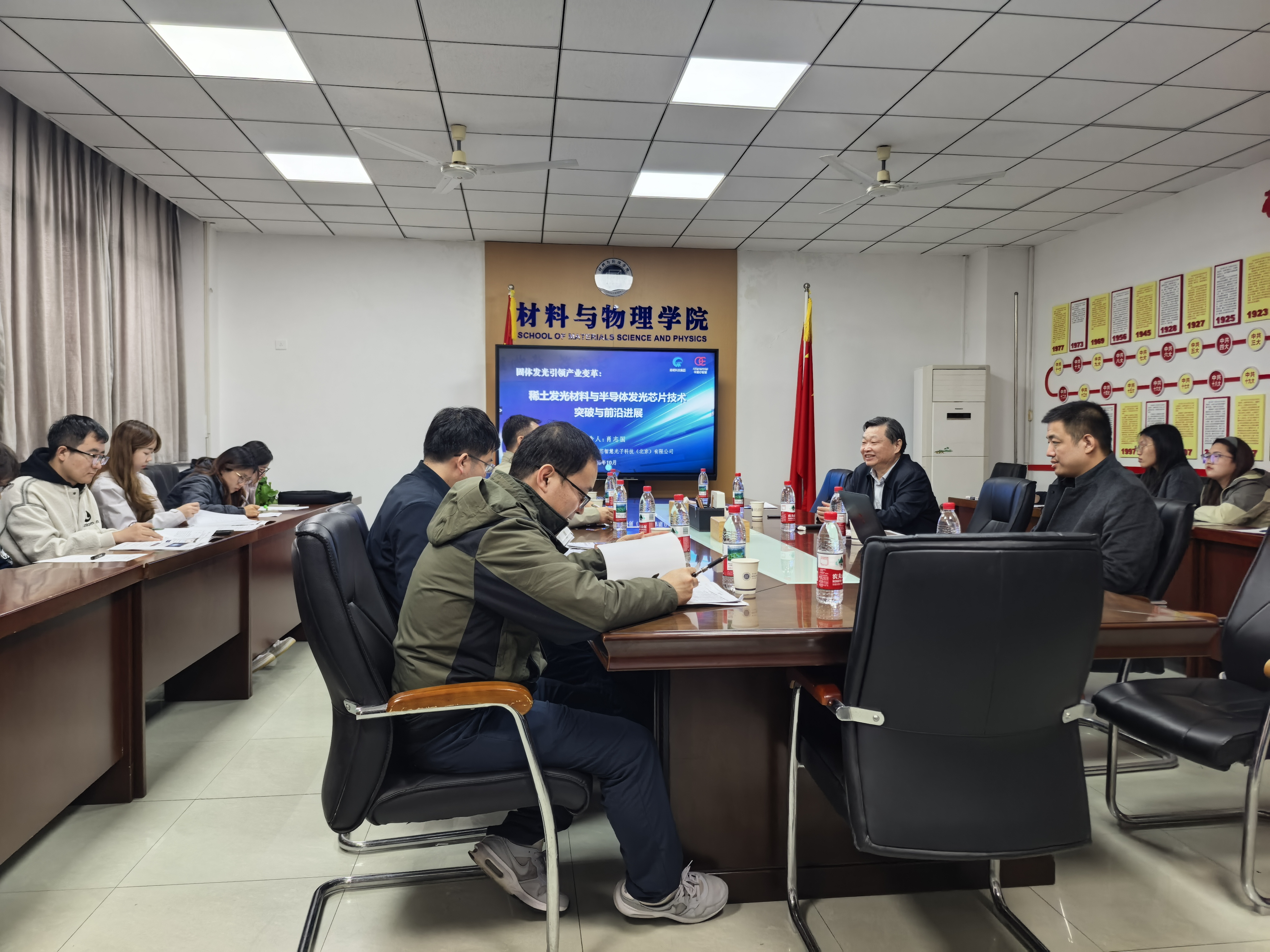 2025年10月20日下午15:30,材料与物理学院在材料楼A501会议室成功举办专题学术讲座,特邀路明科技集团有限公司总工程师、教授级高工肖志国作《固体发光引领产业变革:稀土发光材料与半导体发光芯片技术突破与前沿进展》讲座。