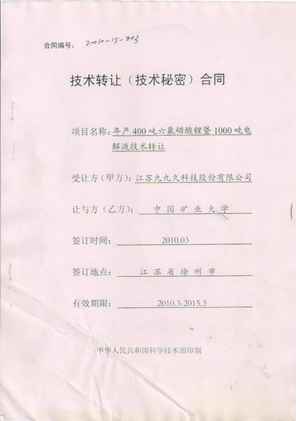 2008年,庄全超老师从西北核技术研究所转业来到中国矿业大学,创建锂离子电池实验室(储能与动力电池团队前身),主要从事低成本高品质六氟磷酸锂与锂离子电池电解液产业化技术、锂离子电池失效分析、锂离子电池功能电解液配方、石墨烯基纳米复合材料等方面的研究工作。15年前,团队以技术秘密转让形式,将自主研发的六氟磷酸锂生产技术转让江苏九九久科技股份有限公司。截止2016年,该项目已实现新增利税4个多亿。近日,我院收到证书,该项目实施期间申请的一项发明专利“六氟磷酸锂的纯化方法及其专用装置”,获得了第25届中国专利优秀奖。