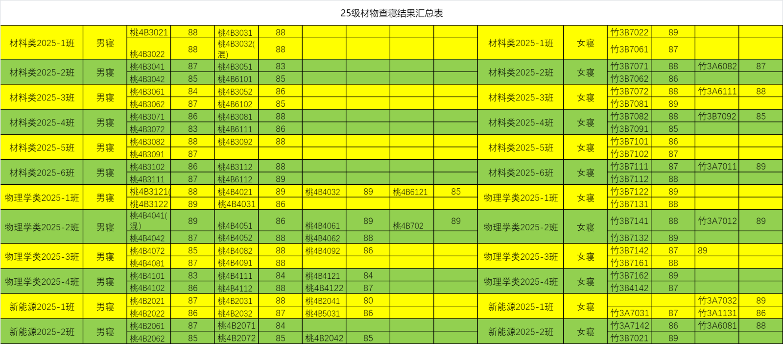 材料与物理学院学生会组织了对大一的查寝活动。为确保宿舍安全,帮助同学们维持良好的住宿环境,营造文明、整洁、舒适的生活环境,现对第九周宿舍检查情况进行报告: