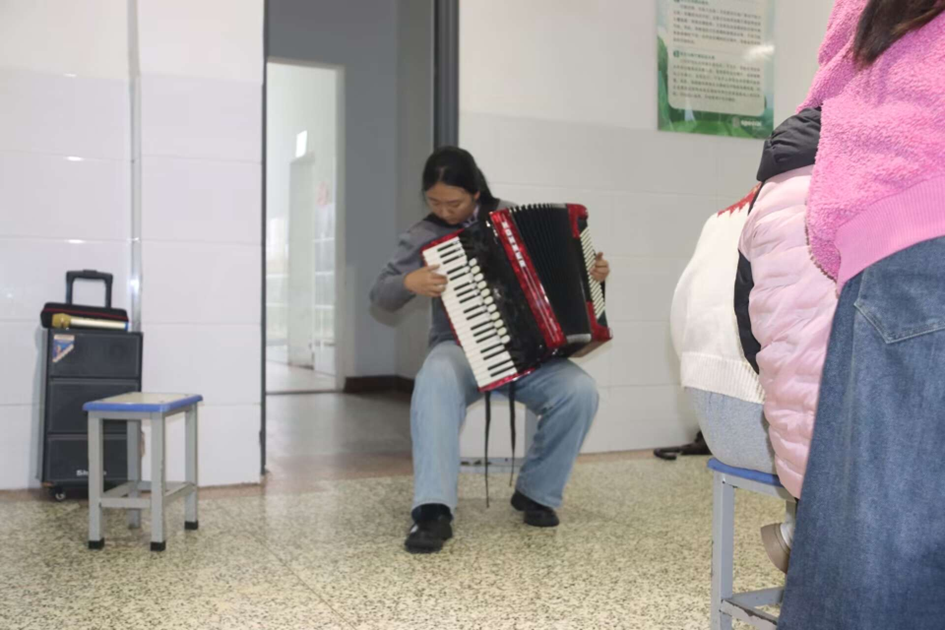 才艺展示环节将活动推向高潮。志愿者与学生们轮番登台献艺,吉他伴奏的《虫儿飞》引发全场大合唱,手风琴独奏《贝加尔湖畔》《假如爱有天意》旋律悠扬动人,合唱《水手》《在你的身边》更是戳中人心。尤其是《水手》中 “他说风雨中,这点痛算什么,擦干泪不要怕,至少我们还有梦” 的歌词,精准契合了孩子们的成长心境,引发强烈情感共鸣。自由活动时段,孩子们主动化身向导,带领志愿者参观教室、宿舍与活动室,还耐心指导志愿者触摸体验盲文教材,让大家直观感受视障学生的学习日常。