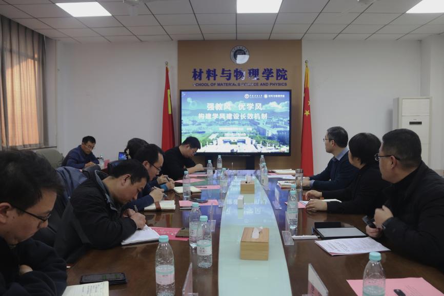 11月26日下午,我院在材料楼A501召开“党建领航聚合力 内涵建设促发展”主题教育暨学风建设专题推进会。学院领导班子成员、各系(中心)主任和教师党支部书记参加会议,会议由党委书记范韶维主持。