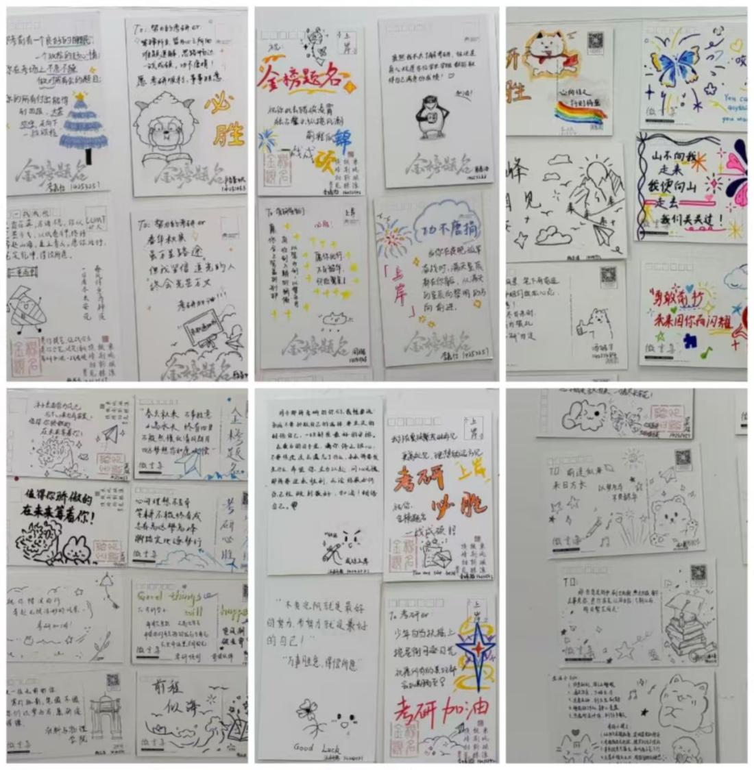 为缓解考研同学的备考压力,传递校园温情与互助精神,搭建跨群体沟通桥梁,让备考路上的每一位追光者感受到被关注、被温暖,材物学院心自助组织了此次以文字为载体,为逐梦之人注入动力的送祝福活动。方寸明信片,浓浓考研情。活动启动后,材物学院本科生踊跃参与,大家线上报名入群,用心准备明信片,把对考研同学的祝福倾注笔端。字里行间,既有励志名言的激昂,也有暖心寄语的恳切,同学们还巧思创意地装饰作品,让每份祝福都独具温度。