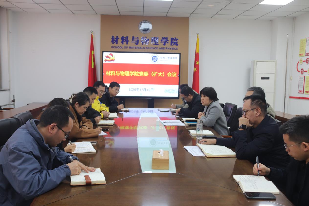 12月15日下午,我院在材料楼A501召开材料与物理学院党委(扩大)会议,学院党委书记范韶维、院长冯培忠、党委副书记李智、副院长焦险峰、院党委委员以及教师党支部书记参加会议。会议由学院党委书记范韶维主持。