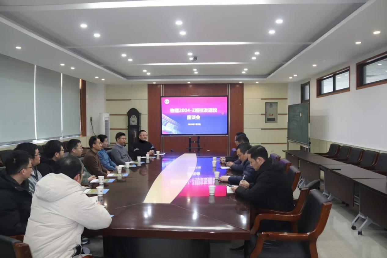 1月2日,物理2004级2班校友返校座谈会在理科楼A504举行,来自全国各地的校友重返母校,共叙同窗情谊,畅谈学院发展。学院党委副书记李智,副院长焦险峰、唐军,原2004级2班班主任王洪涛参加了活动,活动由学院党委副书记李智主持。