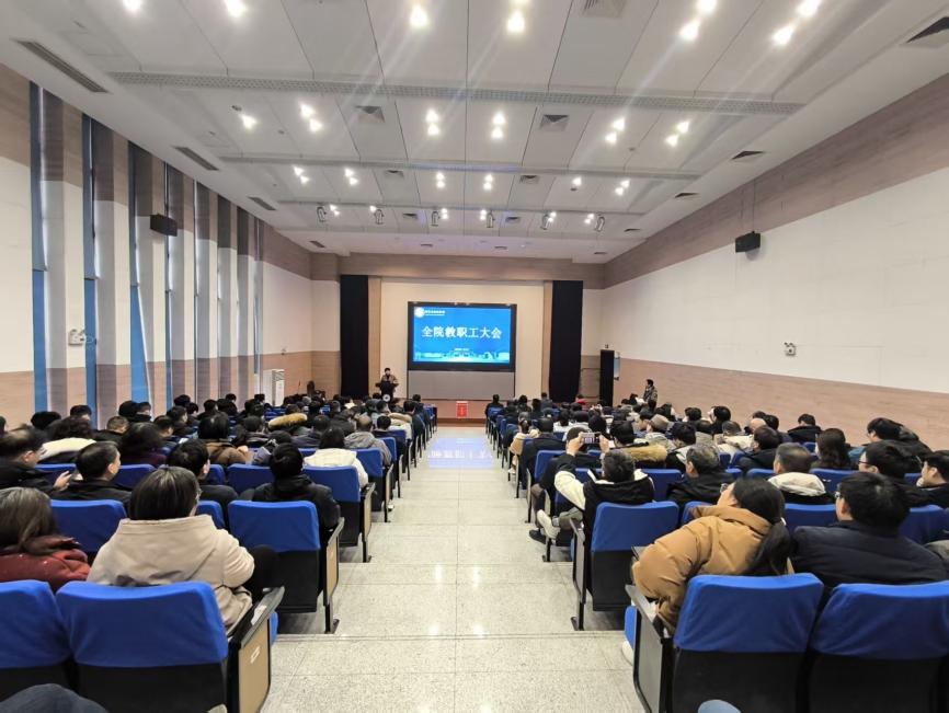 1月5日,我院在机电楼B110召开全院教职工大会,学院领导班子成员、全院教职工参会,会议由院党委书记范韶维主持。