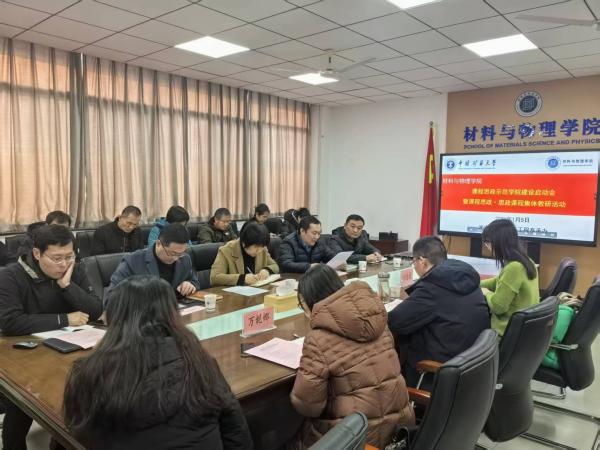 2026年1月5日,我院在材料楼A501举办课程思政示范学院建设启动会暨课程思政·思政课程集体教研活动。活动邀请马克思主义学院副院长张灿和万妮娜、纪佳妮3位思政课教师莅临指导,学院党委书记范韶维,党委副书记李智,副院长唐军,学院一流课程、课程思政示范课程负责人参加了会议,会议由唐军主持。