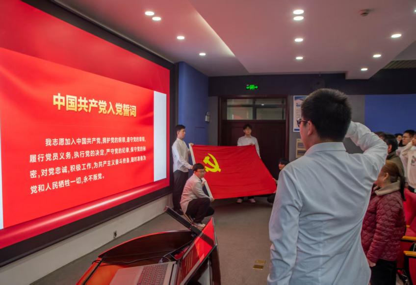 仪式在庄严的《国际歌》声中拉开帷幕,全体党员在宣誓人渠博同志的领誓下,庄严宣誓,铿锵誓言回荡会场,彰显着全体党员对党的忠诚与坚定信仰。宣誓仪式后,万方、刘金龙为新转正党员代表颁发记载入党日期的“政治生日”贺卡,传递党组织的关怀与期许。