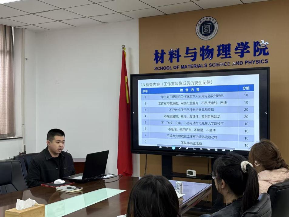 苏彤对《材料与物理学院星级课题组工作室创建与管理实施办法》的制定背景和总体思路作了简要介绍。她指出,课题组工作室是研究生科研学习的重要场所,学院结合前期检查中发现的问题拟制定管理办法,旨在通过创建星级工作室强化安全卫生责任,营造整洁有序、安全文明的科研氛围。