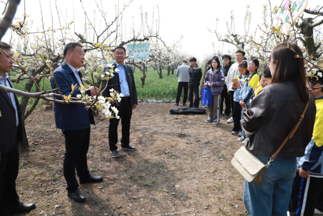 活动现场,大庙村党委书记朱从学为全体学生党员带来了一堂沉浸式的基层实干思政课。他以“特色梨果兴村富民”为主题,结合自身扎根一线的工作经历,详细讲述了大庙村通过引进优质梨品种、成立专业合作社、延伸深加工产业链,逐步发展为年梨产业销售额近千万元的特色产业村的完整奋斗历程。鲜活的实干案例、质朴的分享内容让在场学生党员深受触动,纷纷表示此次“梨园思政课”让抽象的理论学习变成了可感可知的身边故事,进一步明晰了青年党员的责任担当。