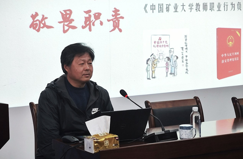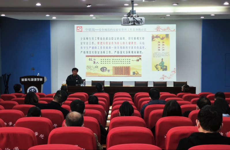 他表示,习近平总书记在党的二十大报告中提出,“加强师德师风建设,培养高素质教师队伍,弘扬尊师重教社会风尚”,作为高校教育工作者,应牢牢遵守《高校教师职业行为十项准则》《研究生导师指导行为八项准则》,敬畏生命、敬畏法律、敬畏规章、敬畏职责,从各方面树立正确的思想与行为规范,更要站在政治稳定的高度,切实重视实验室安全工作,把实验室作为育人的关键课堂,培养学生严谨的工作作风和一丝不苟的科学素养高度。