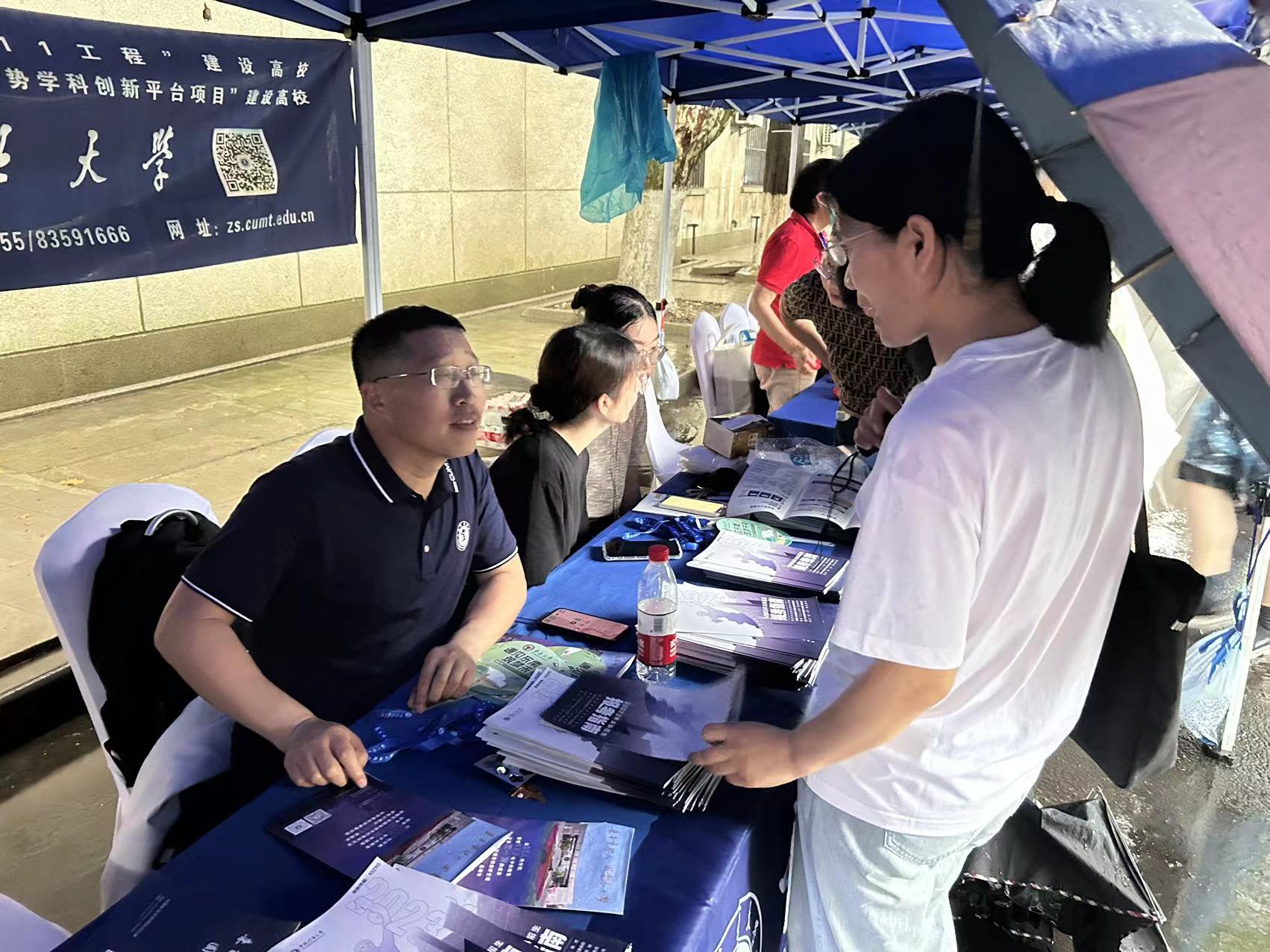6月18日,由东南大学主办的“2023年校园开放日暨高招咨询会”活动在东南大学四牌楼校区举行。120余所高校参加咨询会,中国矿业大学材物学院沈晓鹏教授和2022届本科毕业生吴振翔、邵苏锦、张旭敏参加本次咨询会。