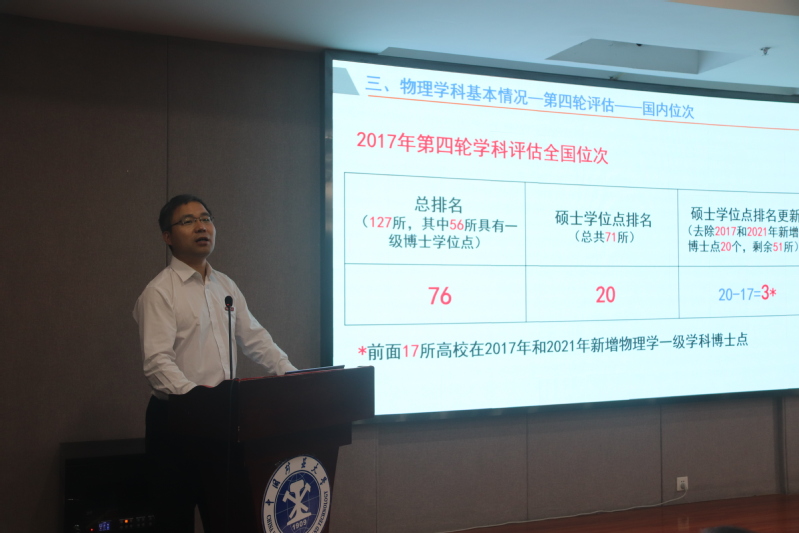 物理学科建设委员会主任刘海顺教授做汇报