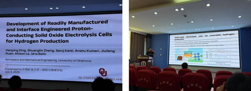 2025年7月3日,来自美国俄克拉荷马大学(University of Oklahoma)航天与机械工程系的丁汉平教授(Prof. Hanping Ding)应凌意瀚老师之邀来到我校与师生开展了精彩的学术交流活动,并于材料楼A105作了题为:“Development of Readily Manufactured and Interface Engineered Proton-Conducting Solid Oxide Electrolysis Cells for Hydrogen Production”的专题学术讲座。